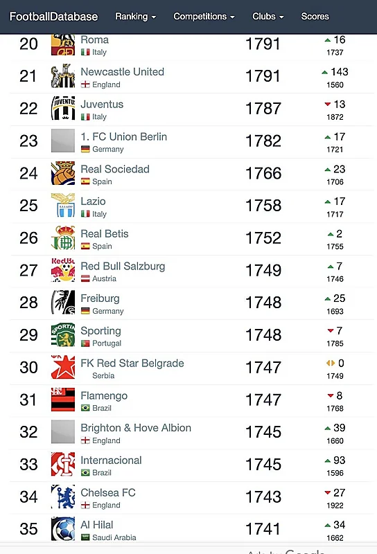 في إنجاز جديد، احتل الهلال المركز الـ 35 على مستوى العالم، وذلك ضمن قائمة أفضل 50 نادٍ في العالم، في تصنيف football database.