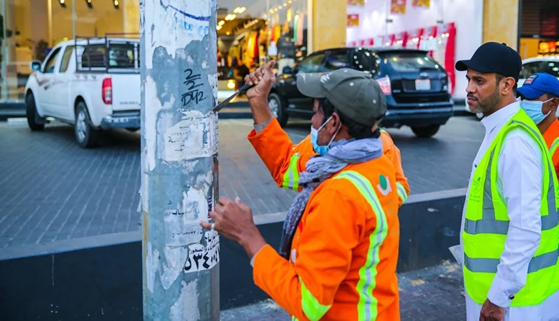 أمانة الطائف تُزيل الملصقات الإعلانية المخالفة من أعمدة الإنارة