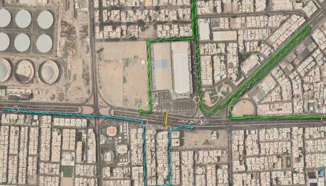 وجاء ذلك نظرا للبدء في تنفيذ مشروع إنشاء جسر مشاة طريق الأمير ماجد أمام العزيز مول.