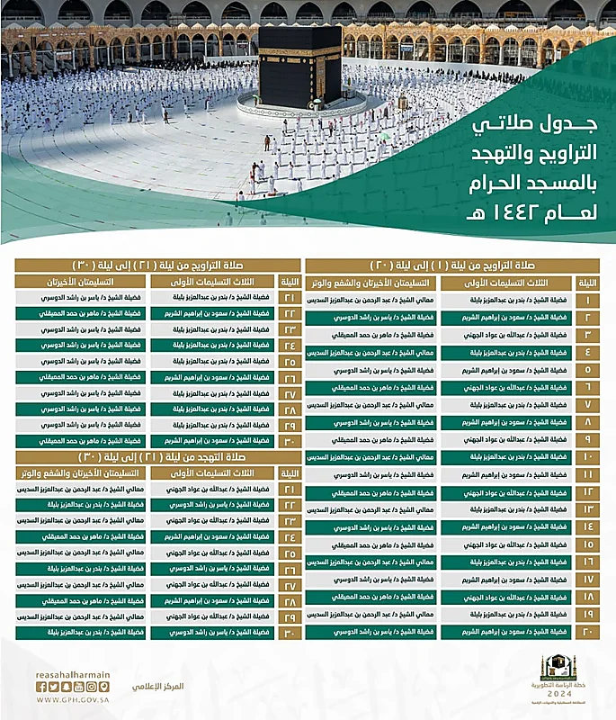 أعلنت الرئاسة العامة لشؤون المسجد الحرام والمسجد النبوي، اليوم الأحد، عن صدور موافقة خادم الحرمين الشريفين الملك سلمان بن عبدالعزيز آل سعود - حفظه الله - على إقامة صلاة التراويح في الحرمين الشريفين وتخفيفها إلى خمس تسليمات مع استمرار الإجراءات التنظيمية والاحترازية التي أعدتها رئاسة شؤون الحرمين والجهات المشاركة في خدمة ضيوف الرحمن خلال شهر رمضان المبارك.