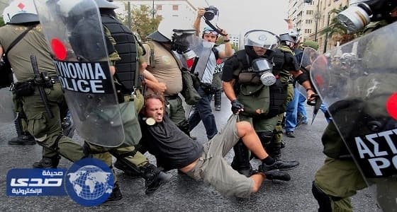 وتأتي الاشتباكات في أول أيام الإضراب العام بأنحاء البلاد في عدد من القطاعات اعتراضا على الإجراءات التقشفية التي من المتوقع أن يمررها البرلمان غدا الخميس.