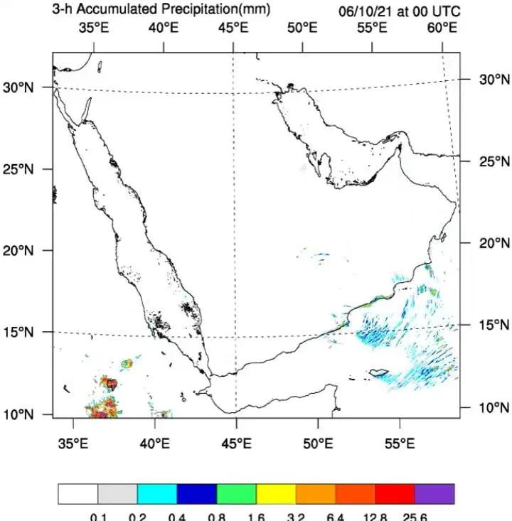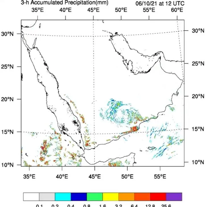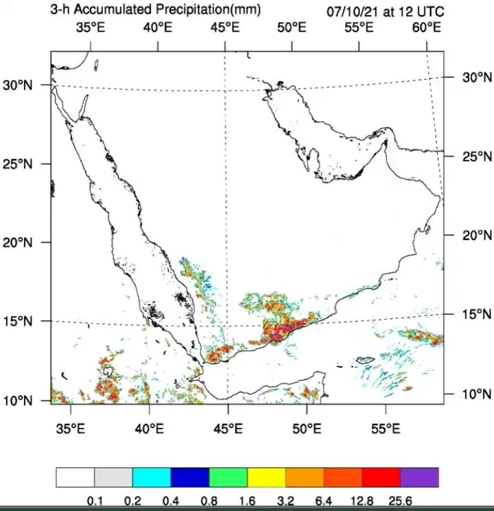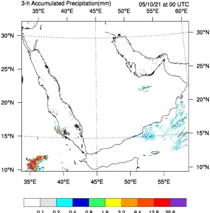 كشف المركز الوطني للأرصاد، اليوم الاثنين، عن مسار الحالة المطرية المتوقعة على بعض مناطق المملكة من اليوم إلى يوم الجمعة من مخرجات النموذج العددي السعودي WRF بدقة 1.6KM.