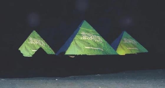 الأهرامات الثلاثة تتلون بالعلم السعودي ترحيبًا بولي العهد في مصر