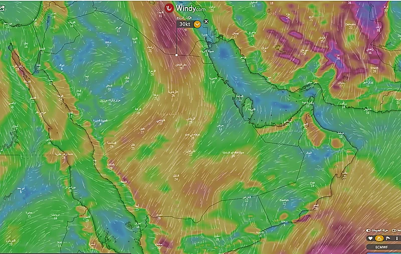 وفي السياق نفسه، أشار "الحصيني" إلى وجود رياح من متوسطة لشبه قوية على وسط وغرب وشمال شرق المنطقة الشرقية من المملكة.