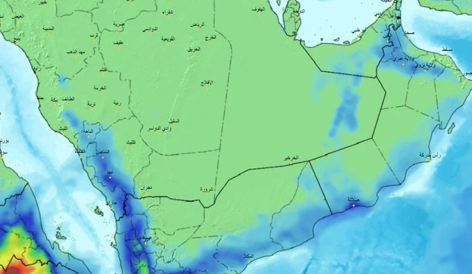 أشار الحصيني إلى أنه من المتوقع هطول أمطار من خفيفة لمتوسطة على مرتفعات عسير وجازان والباحة والربع الخالي، مع نشاط متوسط للرياح على طول الساحل الغربي وشرقها وعلى أجزاء من جنوب المنطقة الشرقية.