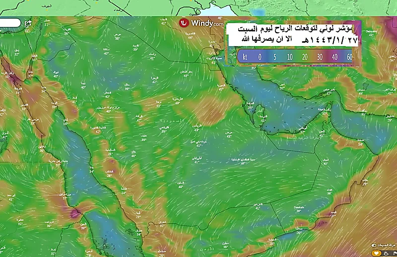 وأشار "الحصيني" إلى وجود رياح من متوسطة لشبه قوية على أجزاء من المناطق الغربية والشمالية والوسطى والشرقية.