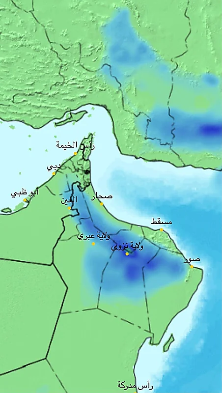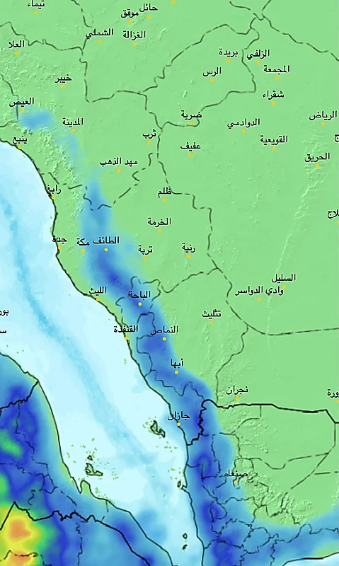 وتوقع الحصيني هطول أمطار من خفيفة لغزيرة على أجزاء من مكة والمدينة والباحة عسير وجازان وعُمان واليمن وجنوب الإمارات وتسبق برياح نشطة من متوسطة إلى قوية.
