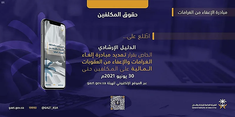 أطلقت الهيئة العامة للزكاة والدخل دليلاً تعريفياً بمبادرة إلغاء الغرامات والإعفاء من العقوبات المالية، التي أعلنت الهيئة عن تمديدها ستة أشهر إضافية، تنتهي في الثلاثين من شهر يونيو المقبل.