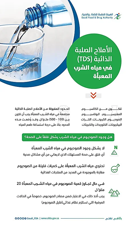 "الغذاء والدواء" توضح حقيقة خطورة الصوديوم الموجود في مياه الشرب