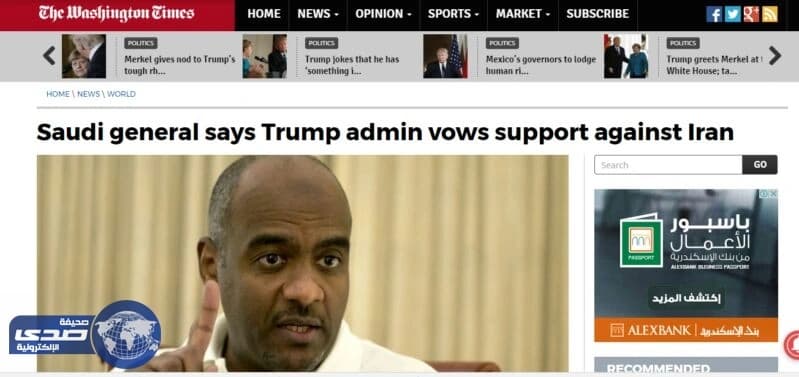 وصرح اللواء العسيري لمجموعة من الصحفيين في العاصمة الأمريكية، حيث أكد أن الجنرال جيمس ماتيس وزير الدفاع الأمريكي ومسؤولين آخرين في الإدارة الأمريكية، تعهدوا بزيادة التعاون مع المملكة العربية السعودية ضد إيران في مختلف الجبهات ،بحسب صحيفة واشنطن تايمز.
