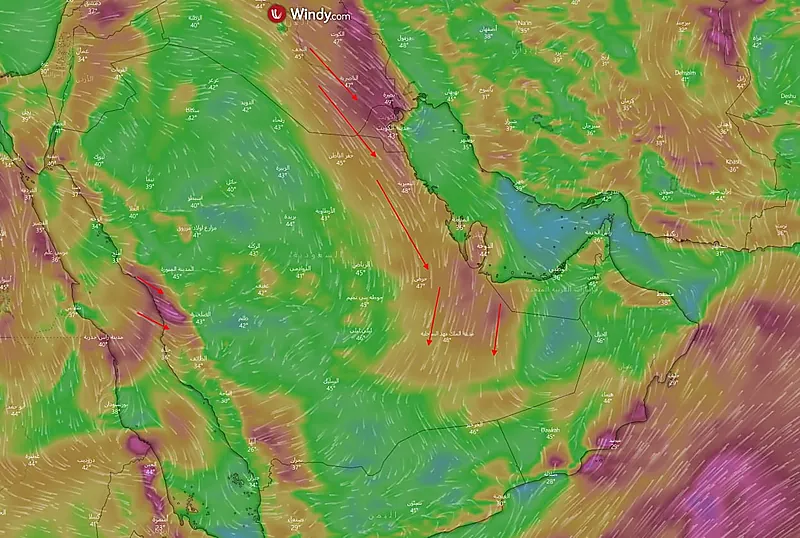أكد أستاذ المناخ بقسم الجغرافيا في جامعة القصيم سابقًا، الأستاذ الدكتور عبدالله المسند، أن رياح البوارح تعاود نشاطها اليوم السبت، متوقعًا أن تثير بعض الغبار في جنوب العراق والكويت والشرقية وقطر، كما تنشط الرياح الشمالية الغربية الرطبة على الساحل الغربي لمنطقتي المدينة المنورة ومكة المكرمة وقد تثير بعض الغبار.