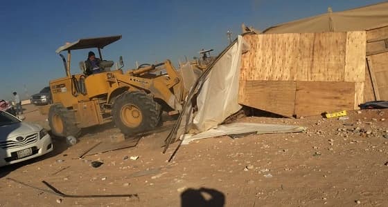 بالصور.. إزالة 63 مخيما مخالفا بالثمامة