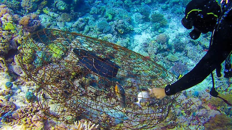 تمكن فريق غوص تابع للمركز الوطني لتنمية الحياة الفطرية، من إنقاذ كائناً بحرياً علق في أحد فخاخ الصيد المهملة بينبع.