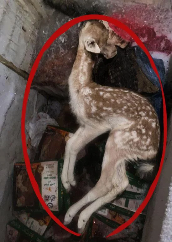 ووجد المراقبون غزالاً وتمساحاً ونسراً كلها نافقة بثلاجة اللحوم إضافة إلى وجود عدد خمسة غزلان لا زالت على قيد الحياة.