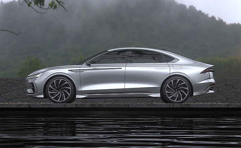وكشف تصمي تخيلي عن هيكل السيارة الفخم من حيث تصميم الواجهة الأمامية المختلف والشكل الذي يجمع بين الأصالة والحداثة فضلاً عن الإطارات المختلفة والإضاءة الفخمة والقوية .