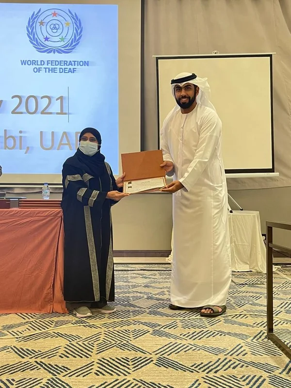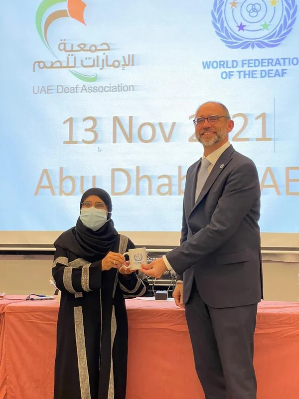 وجاء ذلك خلال الاجتماع الثاني للجمعية العمومية للمنطقة العربية الذي استضافته جمعية الإمارات للصم في أبو ظبي، يوم الجمعة 12 نوفمبر الجاري، بفندق راديسون بلو أبو ظبي، في دولة الإمارات العربية المتحدة، وبحضور أعضاء مجلس إدارة الاتحاد العالمي للصم.