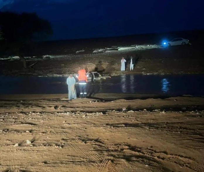 باشر الدفاع المدني في محافظة رماح بلاغا عن احتجاز أشخاص داخل مركبة أثناء جريان أحد الشعاب غرب الرمحية.