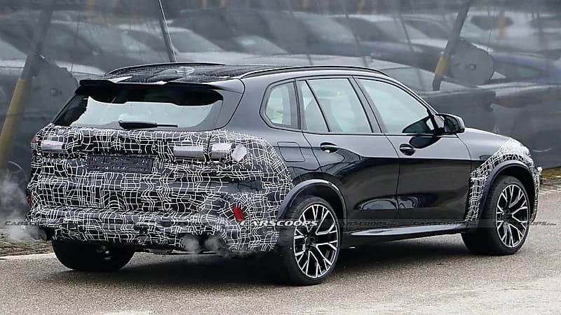 ويعمل غلاف التمويه على تغطية الذيل بالكامل على الرغم من عدم وضع المصابيح الخلفية جانباً يبدو أنه قد طرأ تغير كبير في الخلف حيث تحتفظ X5 الذي يركز على الأداء من قسم M بأنابيب العادم الرباعية والجناح الخلفي الأكبر، كما زودت بمحرك V8 مزدوج التوربو بسعة 4.4 لتر من M ويرسل الحركة إلي جميع العجلات الأربع من خلال ناقل حركة أوتوماتيكي بثماني سرعات بمساعدة نظام M xDrive ومنشط M التفاضلي.
