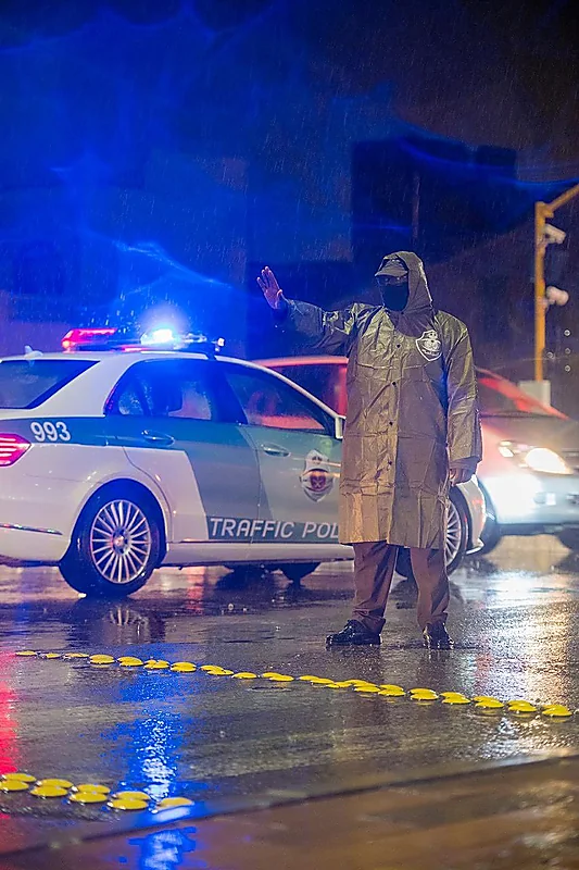 ووثقت مجموعة من الصور، الجهود المبذولة لرجال الأمن للتأكد من تطبيق الاحترازات،تحت زخات المطر، ضمن أعمال لجنة الطوارئ العليا برئاسة أمير منطقة القصيم لضبط المخالفين.