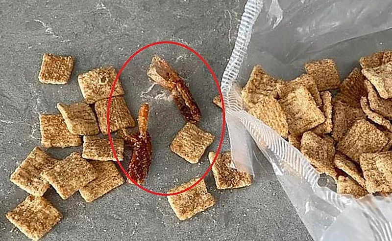 ونشر صورًا كشفت عن ما يبدو أنها فضلات فئران تم خبزها؛ فيما جاء رد الشركة المصنعة بشأن وجود ذيول الروبيان و"الأشياء الأخرى"، غريبا لا يصدق، وإلى درجة الاستفزاز.