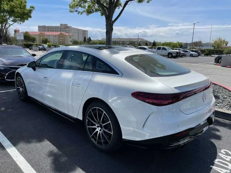 وظهرت سيارة EQS في صور مموهة بشكل خفيف للغاية، وذلك في ساحة انتظار سيارات تيسلا، حيث وكان الجزء الوحيد المموه هو شعار مرسيدس بالأمام.