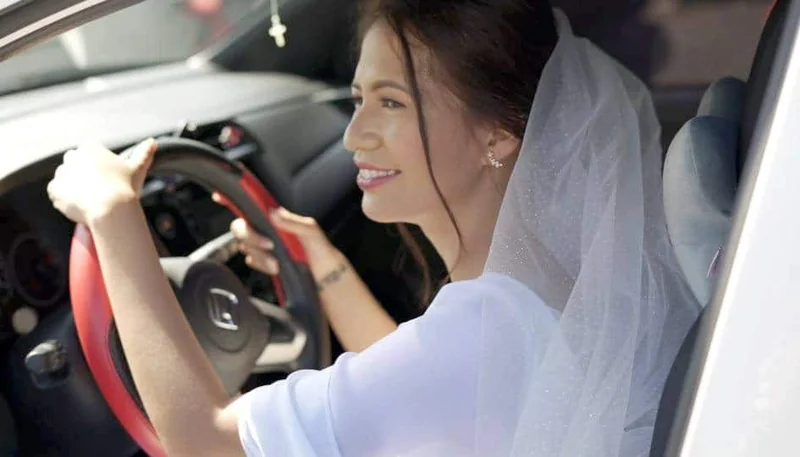 بالصور.. عروس تثير ضجة بقيادتها سيارة زفافها بنفسها