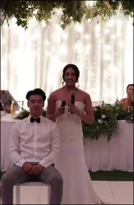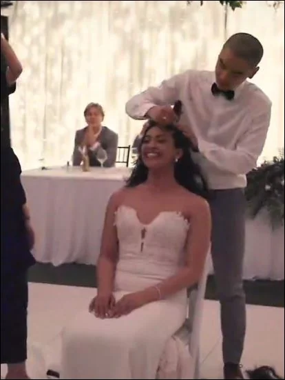 وبدأت العروس بخطاب قبل أن يجلس زوجها الجديد على كرسي أمامها وقالت: "يعتقد والداي أننا سنقوم برقصة تقليدية" مضيفة:"فسنحلق رؤوسنا من أجل السرطان، ومهما كان المال الذي تضعه أمامنا، فسوف نتبرع به الليلة".