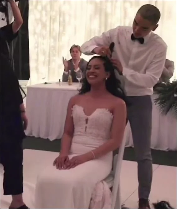 بالصور.. عروس وزوجها يدعمان والدتها المصابة بالسرطان بحلاقة رأسهما