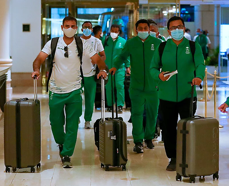 بالصور .. لاعبو الأخضر يصلون إلى طوكيو