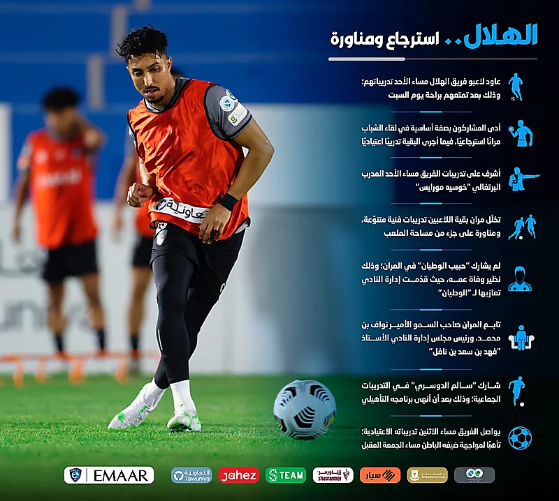 عاود لاعبو فريق الهلال مساء الأحد تدريباتهم وذلك بعد تمتعهم براحة يوم السبت.