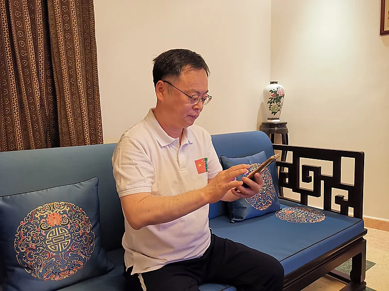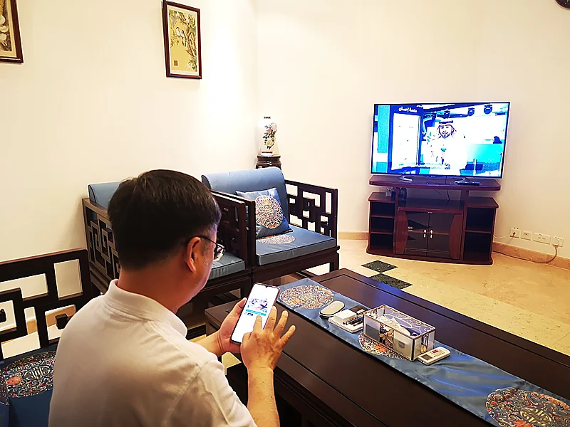 ظهر السفير الصيني لدى المملكة ، تشن وي تشينغ، وهو يشارك في الحملة الوطنية للعمل الخيري لمنصة إحسان.