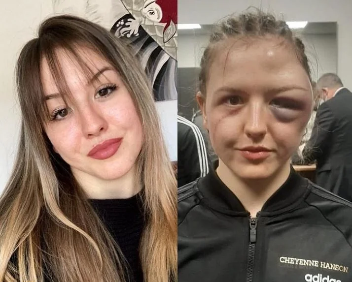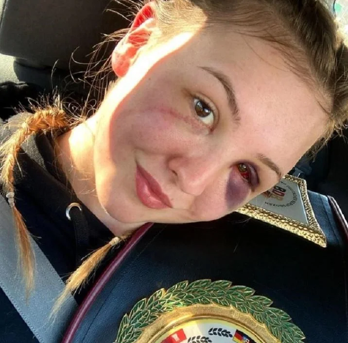وأظهرت صور الملاكمة الألمانية شيني هانسون قبل وبعد النزال أمام منافستها الأوكرانية آلينا زايتسيفا ضمن بطولة ألمانيا للملاكمة.