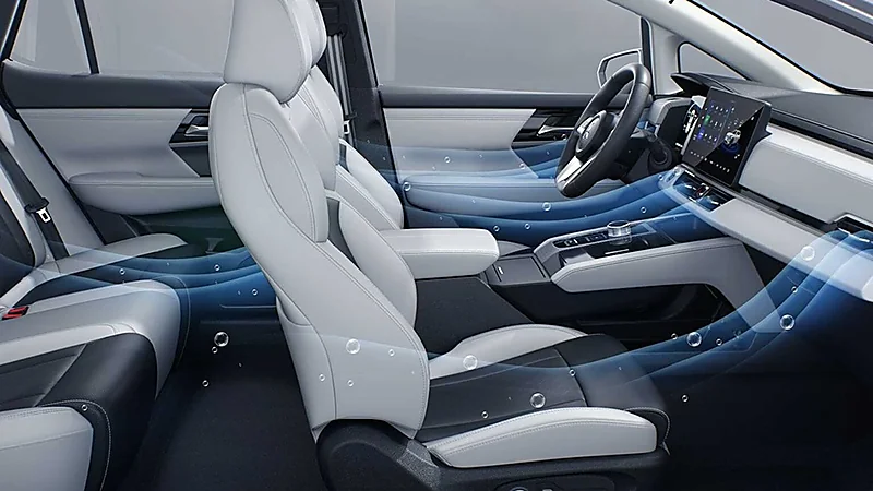 ووضعت ميتسوبيشي ضوابط السيارة في شاشة لمسية كبيرة لنظام المعلومات الترفيهية، مع لوحة عدادات رقمية بتقنية الواقع المعزز للملاحة، وتدعم السيارة مدى صافي 520 كيلومتر.