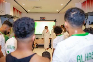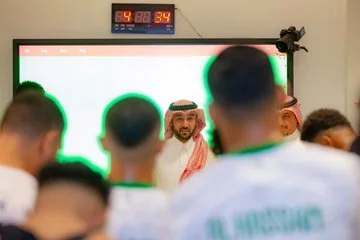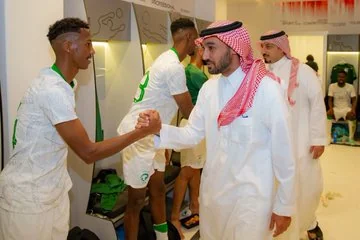 التقى وزير الرياضة الأمير عبدالعزيز بن تركي الفيصل بلاعبي المنتخب السعودي بعد نهاية مواجهتهم أمام المنتخب الكرواتي في آخر وديات الأخضر استعداداً لكأس العالم.