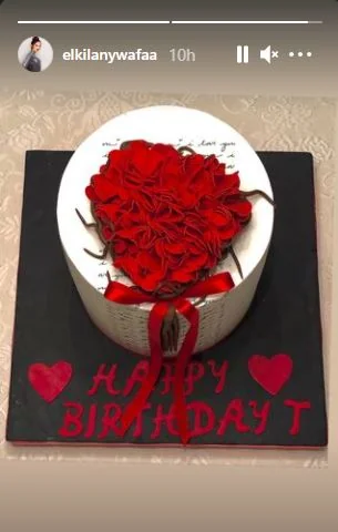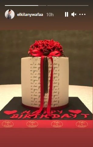 كما نشرت وفاء الكيلاني، صور لقالب الحلوى الذي جاء على شكل ورود حمراء.