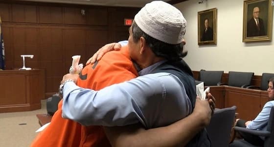 ولَم يكتفِ الرجلُ المسلم بالعفو عن هذا الشخص الذي حُكِم عليه بالسجن، لضلوعه بدور في قتل ابنه، بل إنه عانقه أيضاً، حسبما رصدت كاميرا محطة سي إن إن الأميركية.
