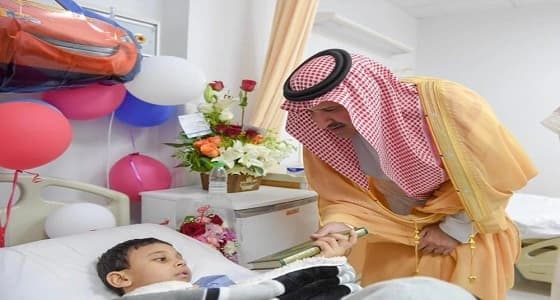 بالفيديو..أمير المدينة المنورة يزور الطفل المصري الذي فقد والديه في حادث