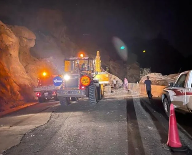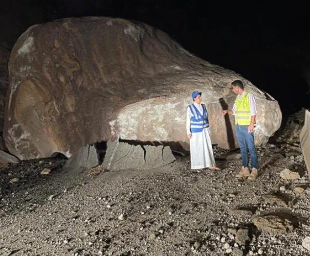 وباشرت فرق من وزارة النقل بمنطقة الباحة الموقع، حيث تمكنت من فتح المسار في وقت وجيز رغم ضخامة الصخرة.