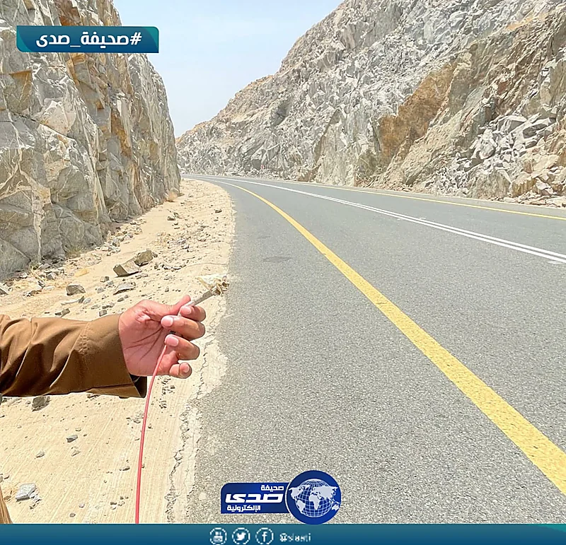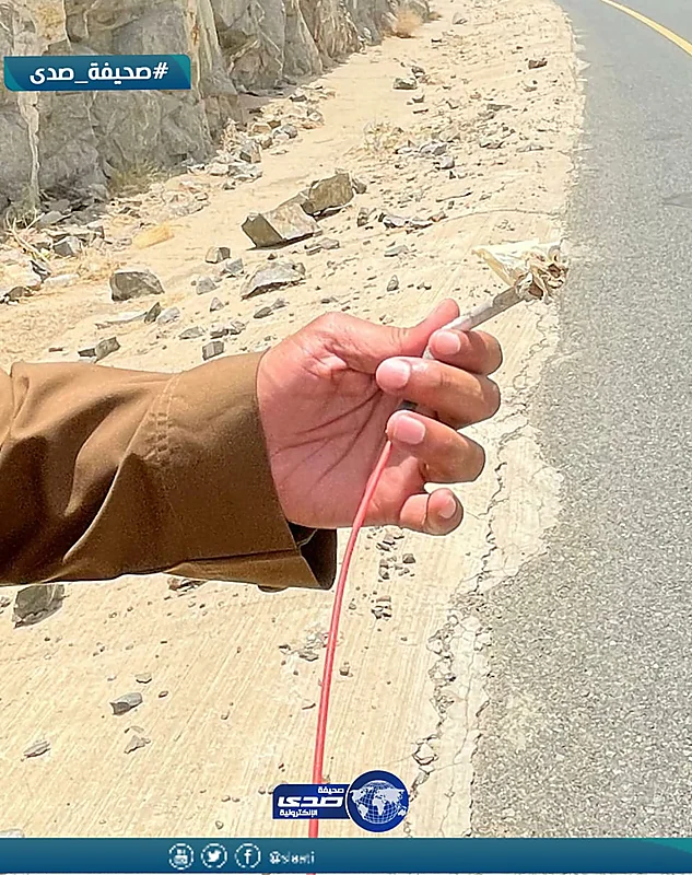 وفي التفاصيل فقد أثارت أسلاكاً تتوغل داخل ثقوب في صخور الجبال الواقعة على طريق " أم حطب " الرابط بين محافظتي الليث وأضم التساؤل ، هل يوجد بتلك الثقوب متفجرات ، وهل تشكل خطراً أم لا؟ .