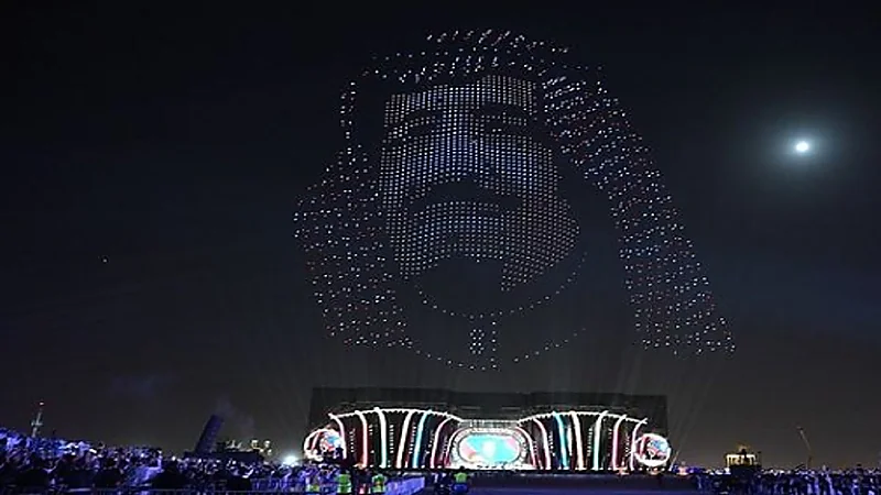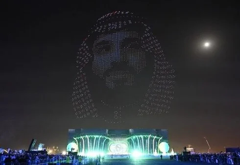 وثق مقطع فيديو تزين سماء الرياض بصورة خادم الحرمين الشريفين الملك سلمان بن عبدالعزيز وولي العهد الأمير محمد بن سلمان – حفظهما الله - ، وذلك خلال حفل افتتاح موسم الرياض.