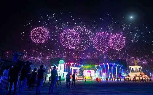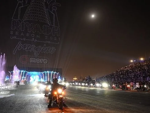وشهدت سماء الرياض أيضًا إنطلاق الألعاب النارية في مسيرة استعراضية مبهرة من أجل بدء الترحيب بالزوار في موسم الرياض.