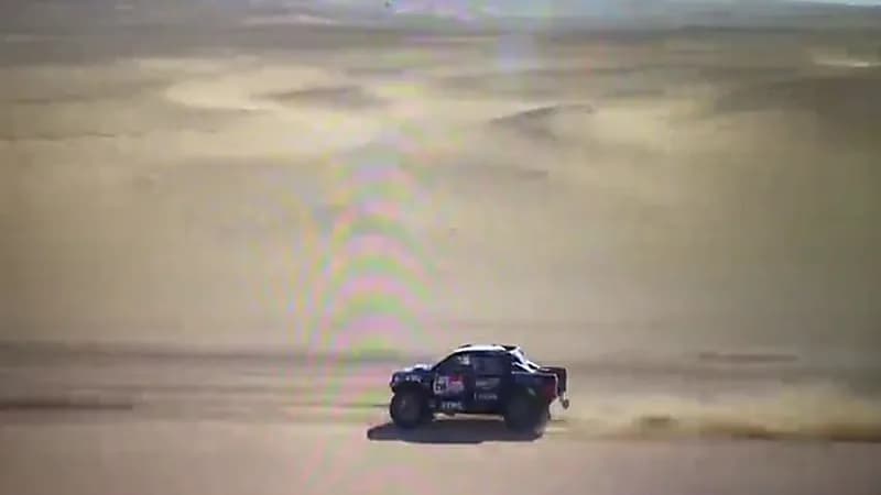 وظهر في الفيديو السيارة وهى تنقلب عدة مرات على الرمال أثناء خوض سباق داكار السعودية بالقيصومة في الرياض.