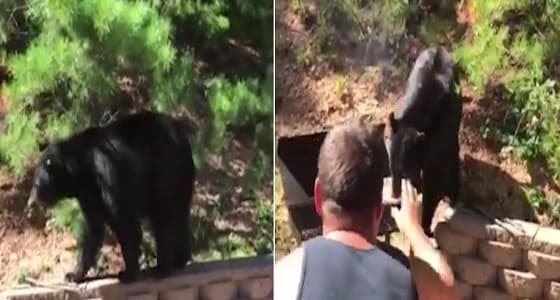 وأظهر مقطع فيديو متداول عبر مواقع التواصل الاجتماعي أحد أفراد الأسرة وهو يحاول طرد الدب لكنه لم يتراجع فقد كانت رائحة الشواء تجذبه بقوة، وقرر الاستيلاء على بعض الطعام الموضوع على المشواة.