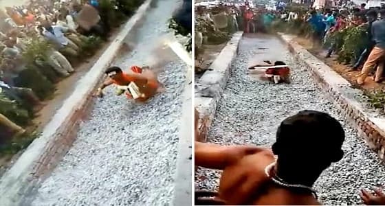 بالفيديو.. سقوط مروع لكاهن بجمر مشتعل