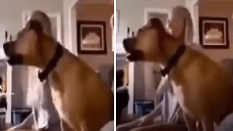 بين الفيديو مدى تأثر الكلب الشديد بإحراز إحدى فرق المباراة هدفا مما دفعه للقفز بحماس لأعلى حتى سقط أرضا وهو يضحك للفتاة بجواره.