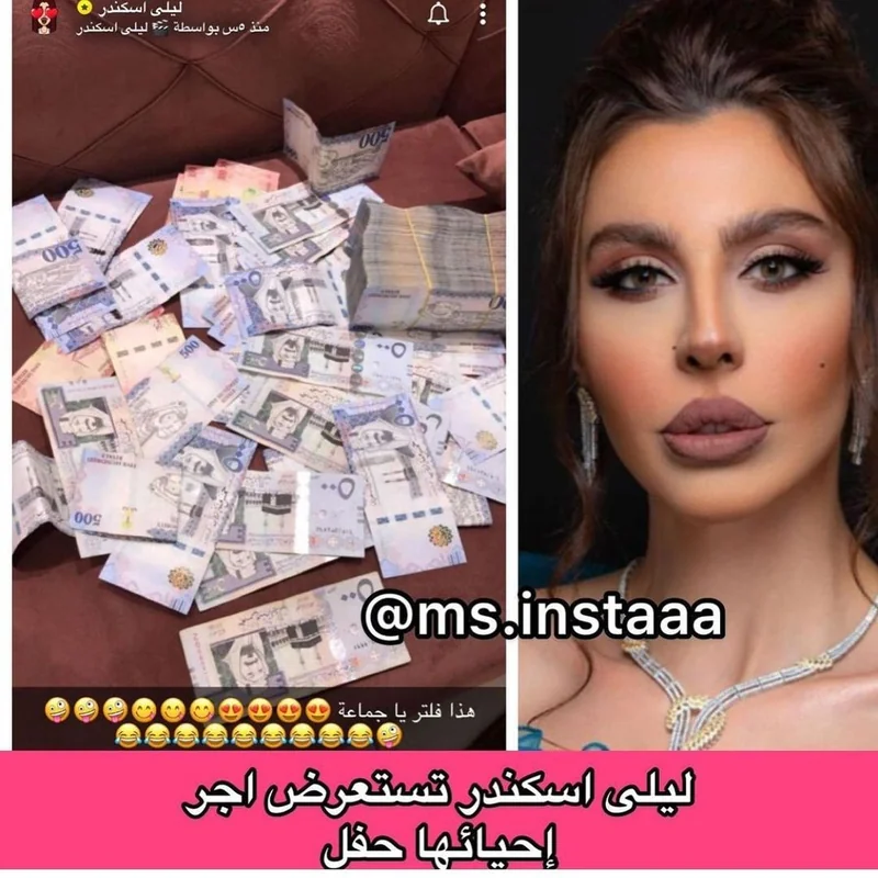 آثارت الفنانة اللبنانية ليلى اسكندر ضجة واسعة بعدما عرضت خلال حسابها على سناب شات خلاله عدداً كبيراً من الأوراق النقدية وأرفقته بالتعليق: "هذا فيلتر يا جماعة".