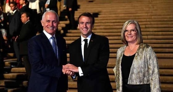 أثار رئيس فرنسا إيمانويل ماكرون، ضجة على مواقع التواصل؛ على خلفية تغزله في زوجة رئيس الوزراء الاسترالي ترنبول.