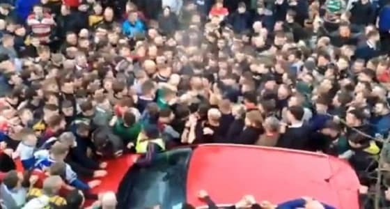 بالصور.. مشجعون يسحقون سيارة متوقفة في طريقهم