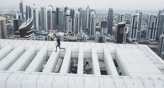 وظهر ديفيد في مقطع فيديو متداول وهو على حافة ناطحة سحاب “ الدار ” في دبي ، قبل أن يقفز فوق الفجوات الهائلة في سقف المبنى، على ارتفاع 242 قدمًا فوق سطح الأرض.