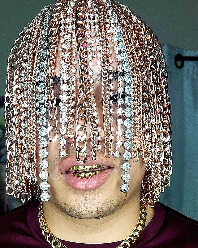 بالفيديو.. مغني راب يستبدل شعره بسلاسل ذهبية